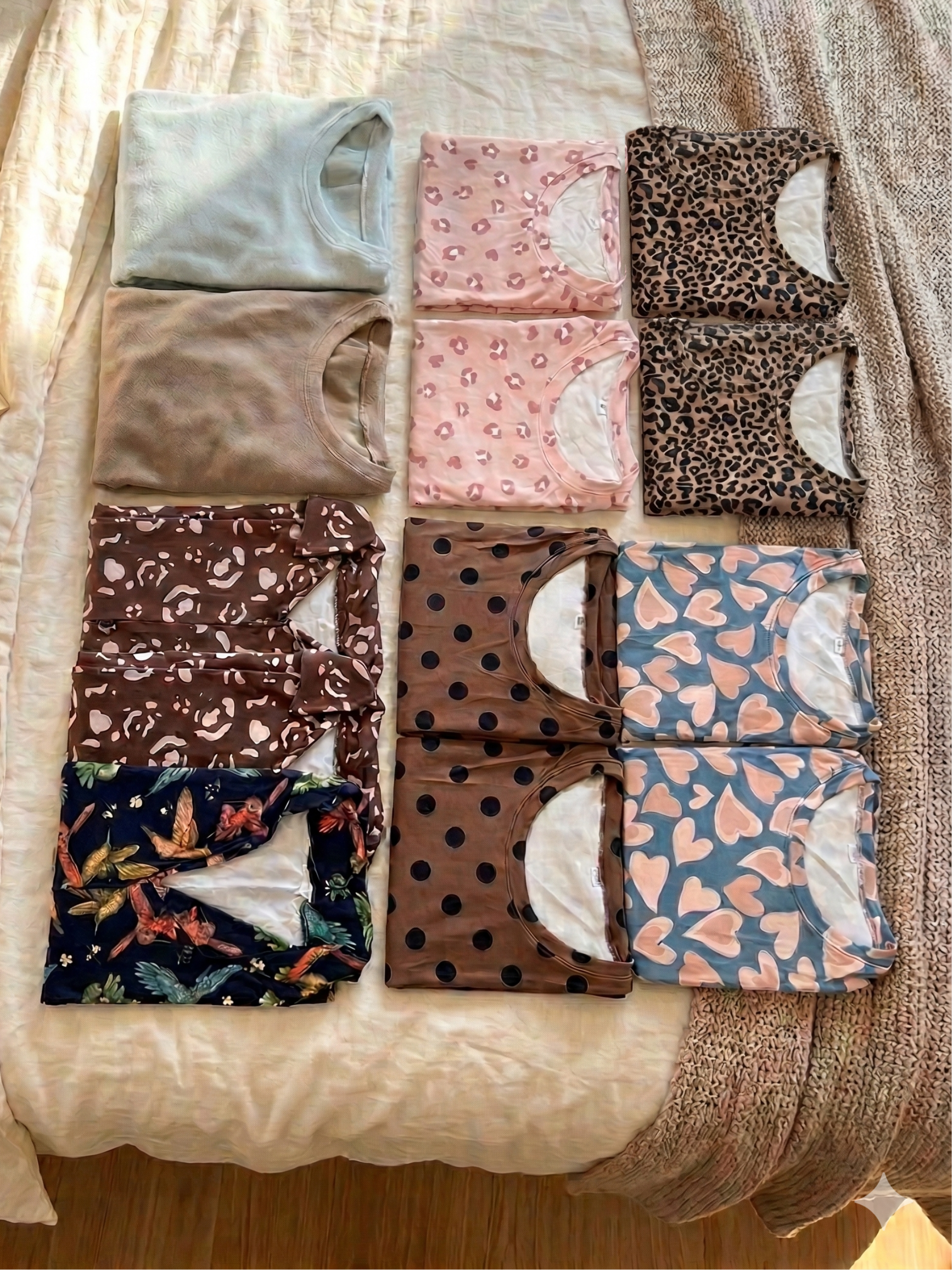 8 Pijamas de Modal Soft Premium: Remera manga larga + pantalón (estampados y lisos según stock).