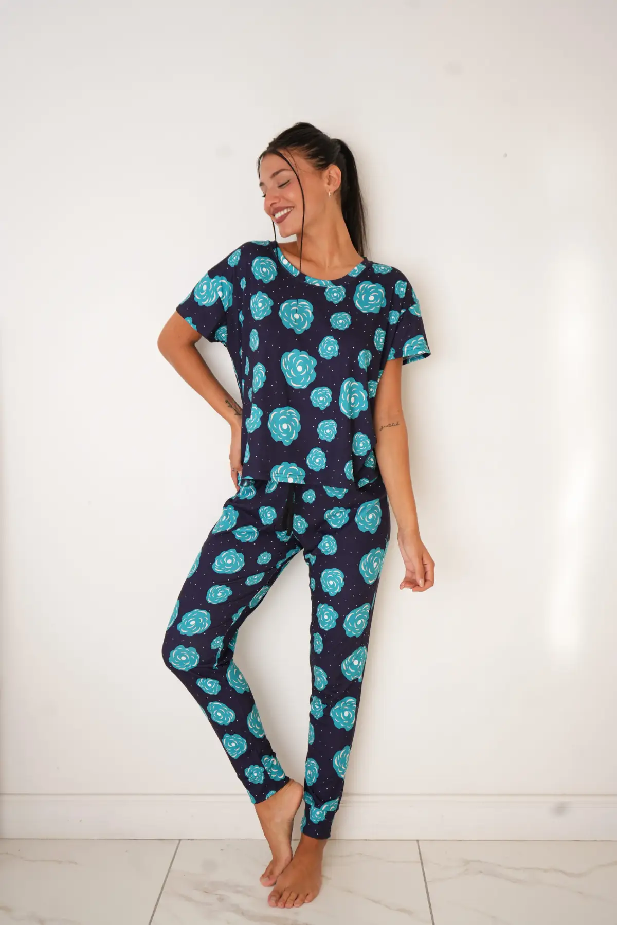 - Manga corta estampada soft premium + pantalón largo estampado modal soft premium