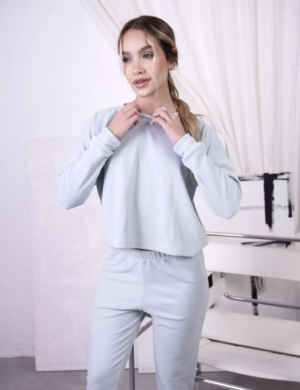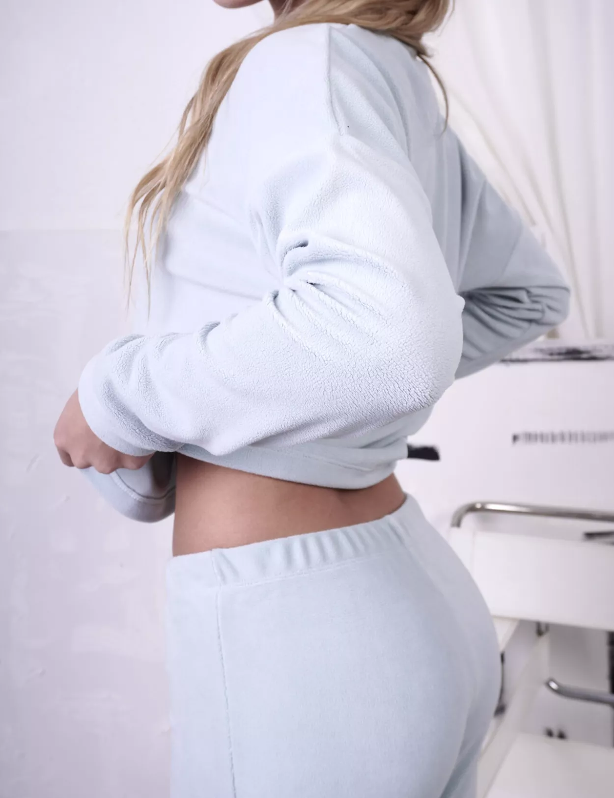 Pijama Micropolar Crop Top Celeste