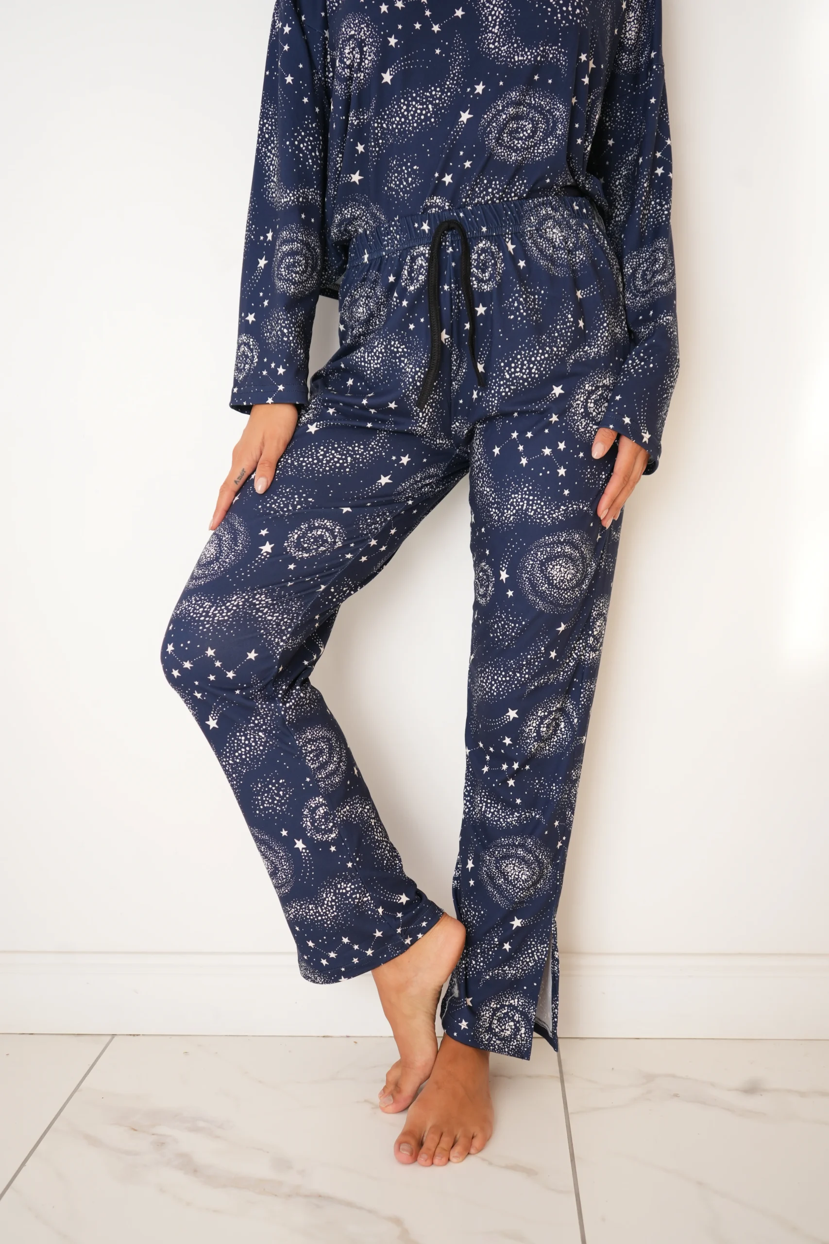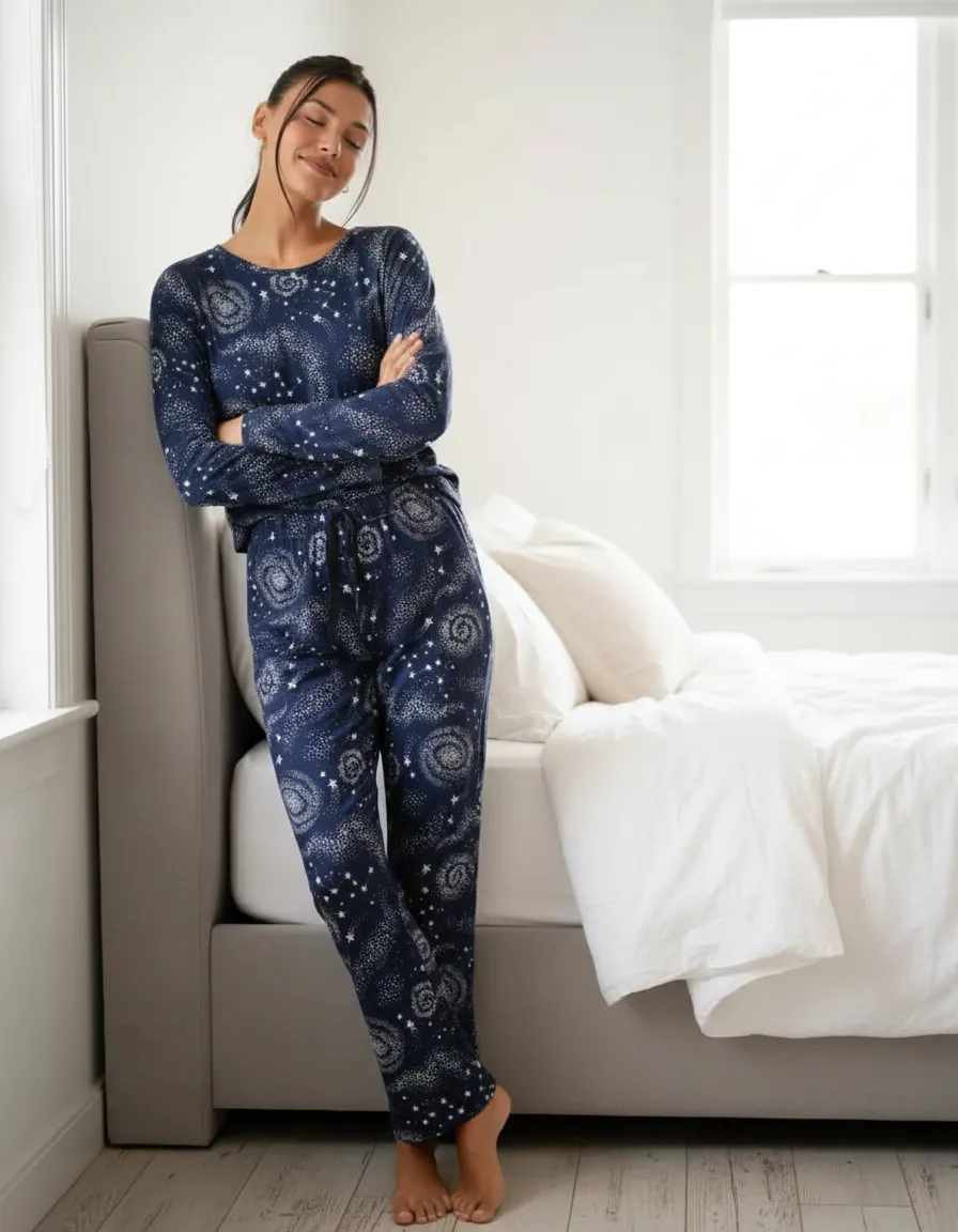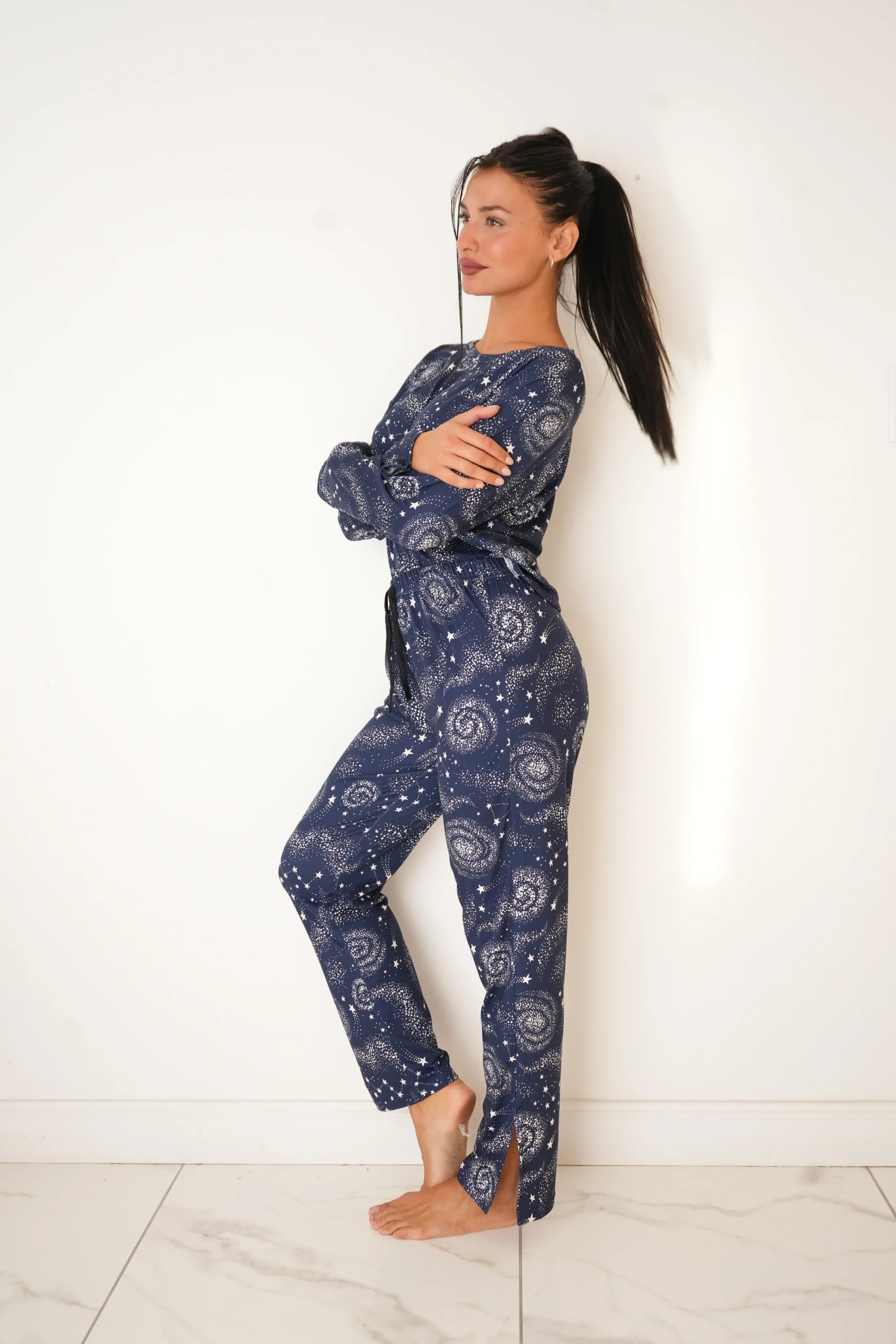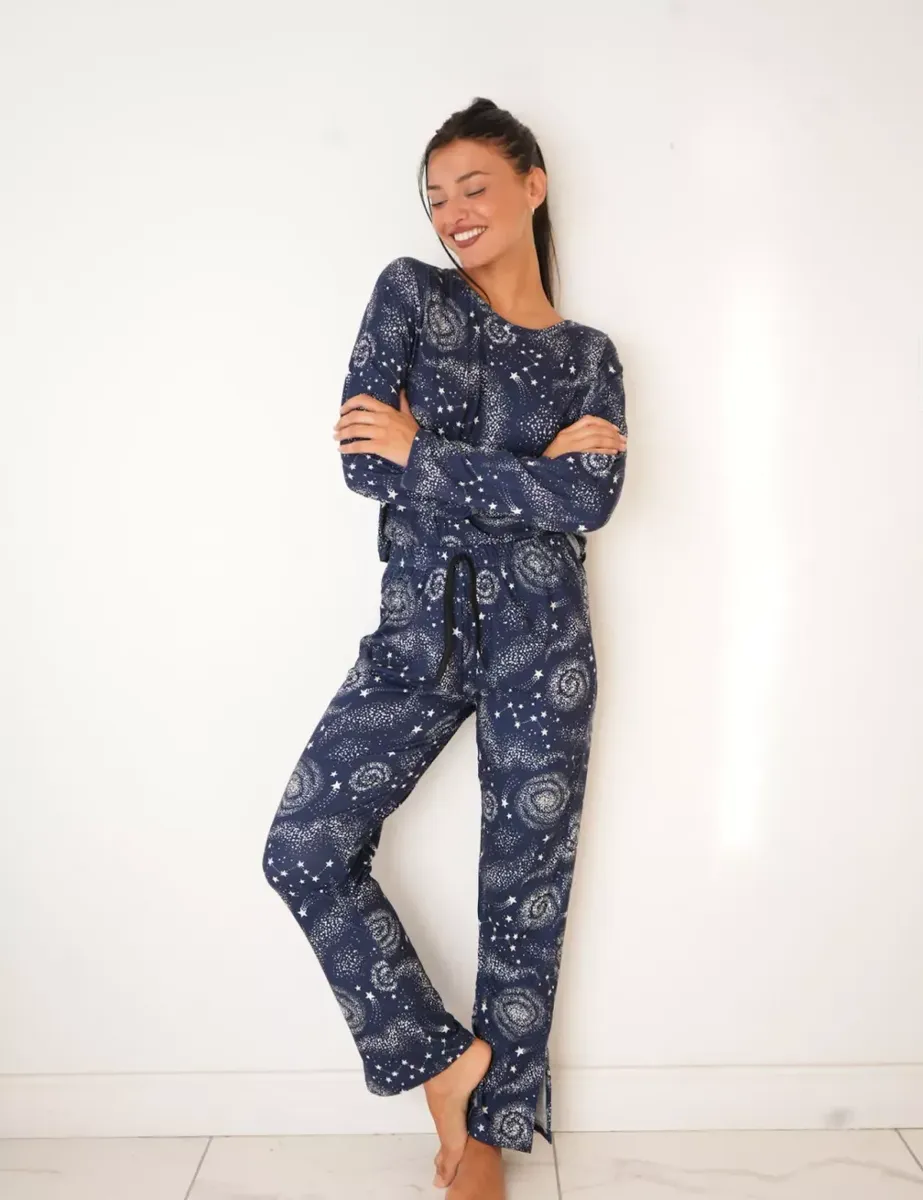 - Manga Larga crop top estampada soft premium + pantalón largo estampado con tajo modal soft premium