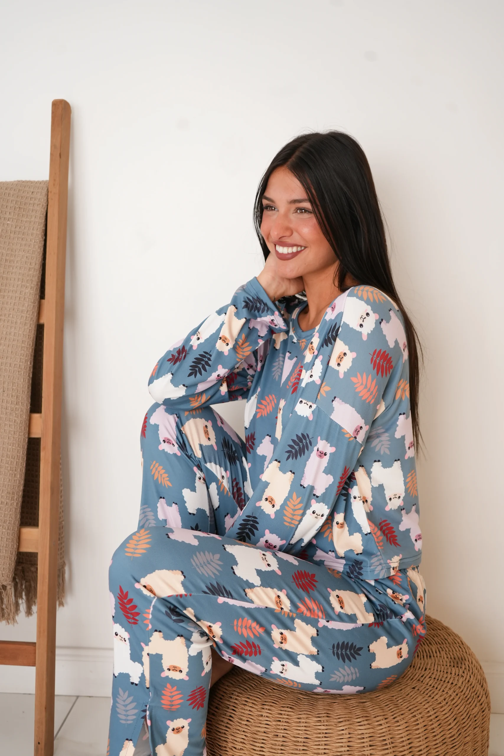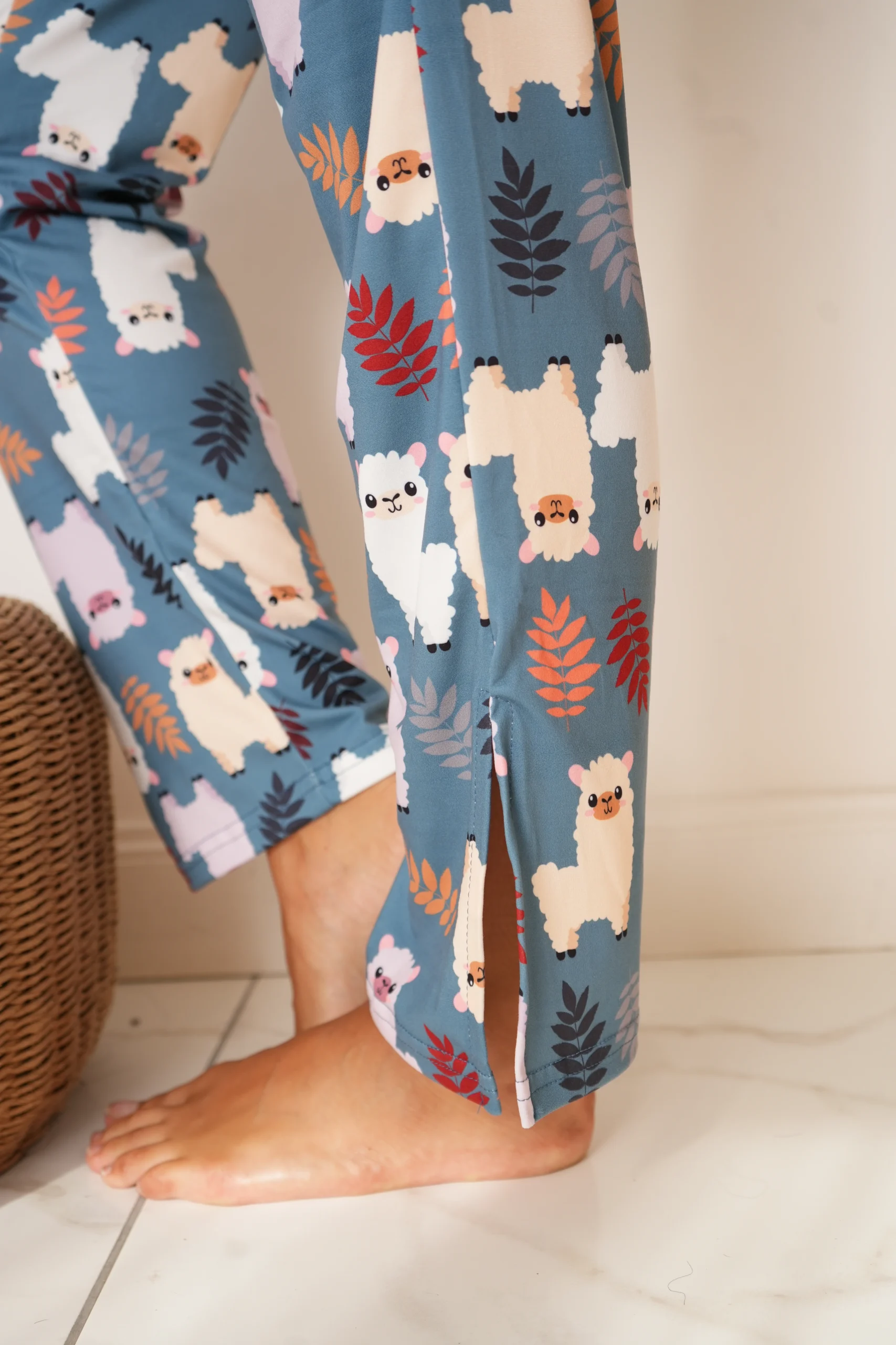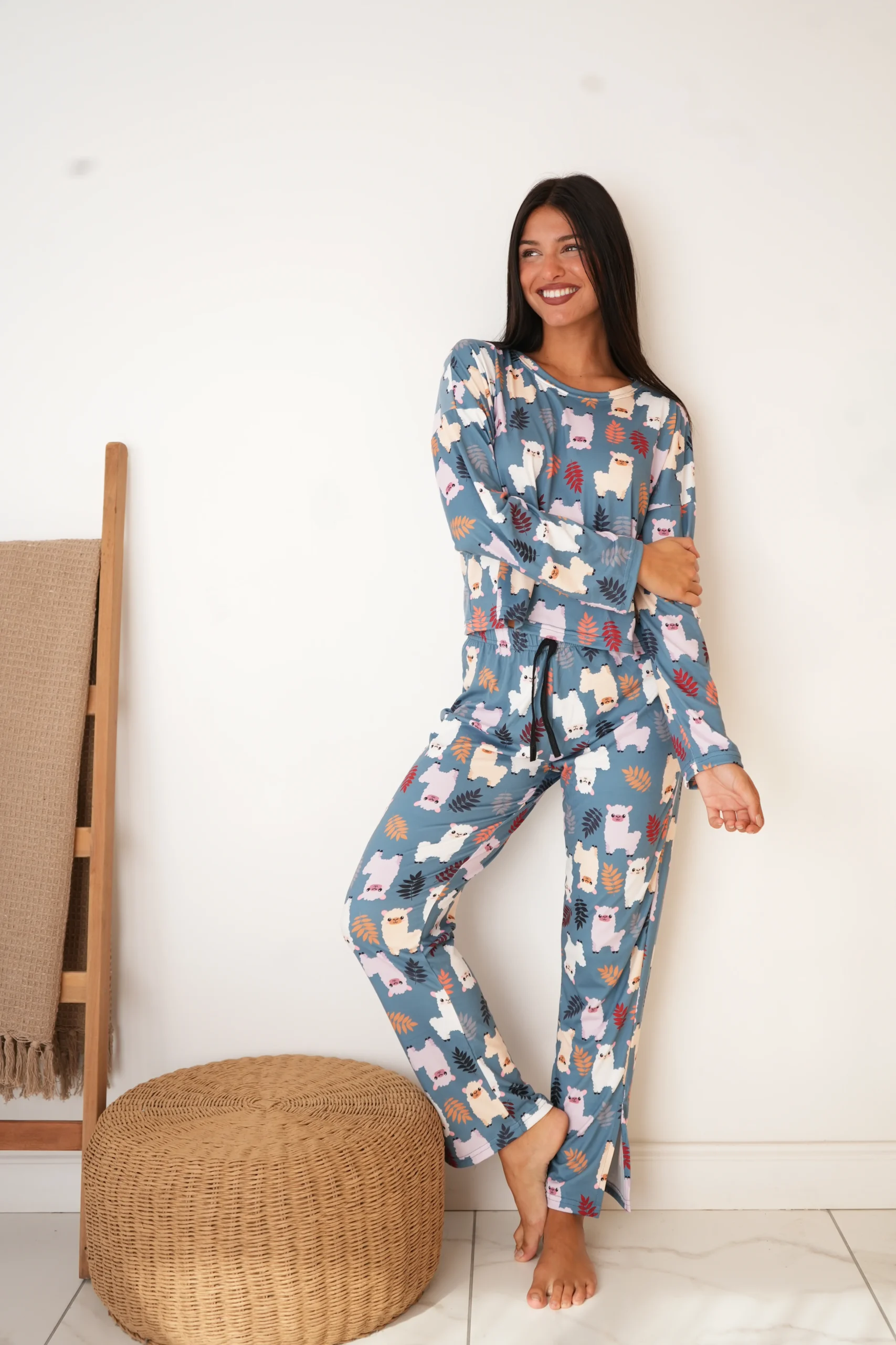 - Manga Larga crop top estampada soft premium + pantalón largo estampado con tajo modal soft premium
