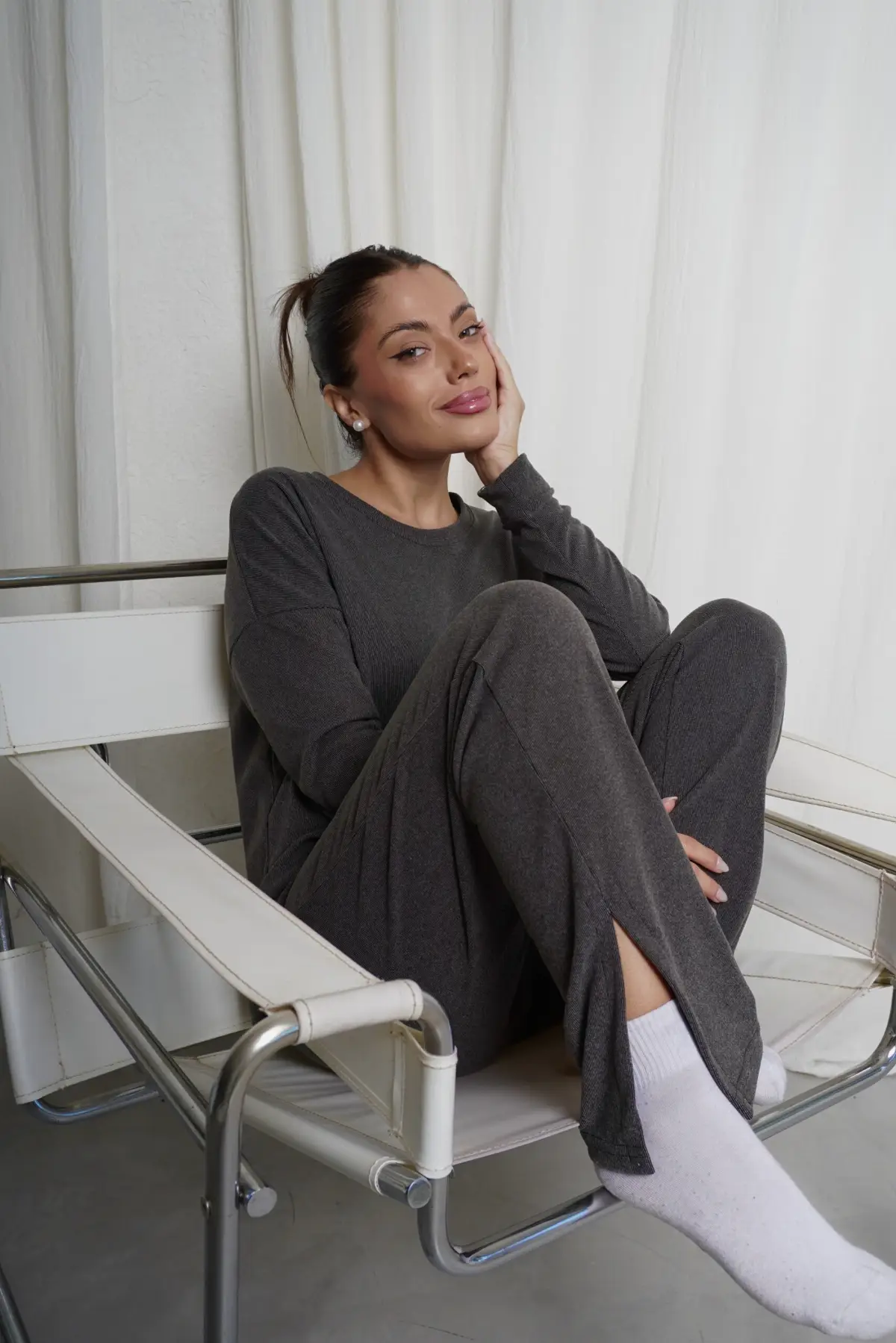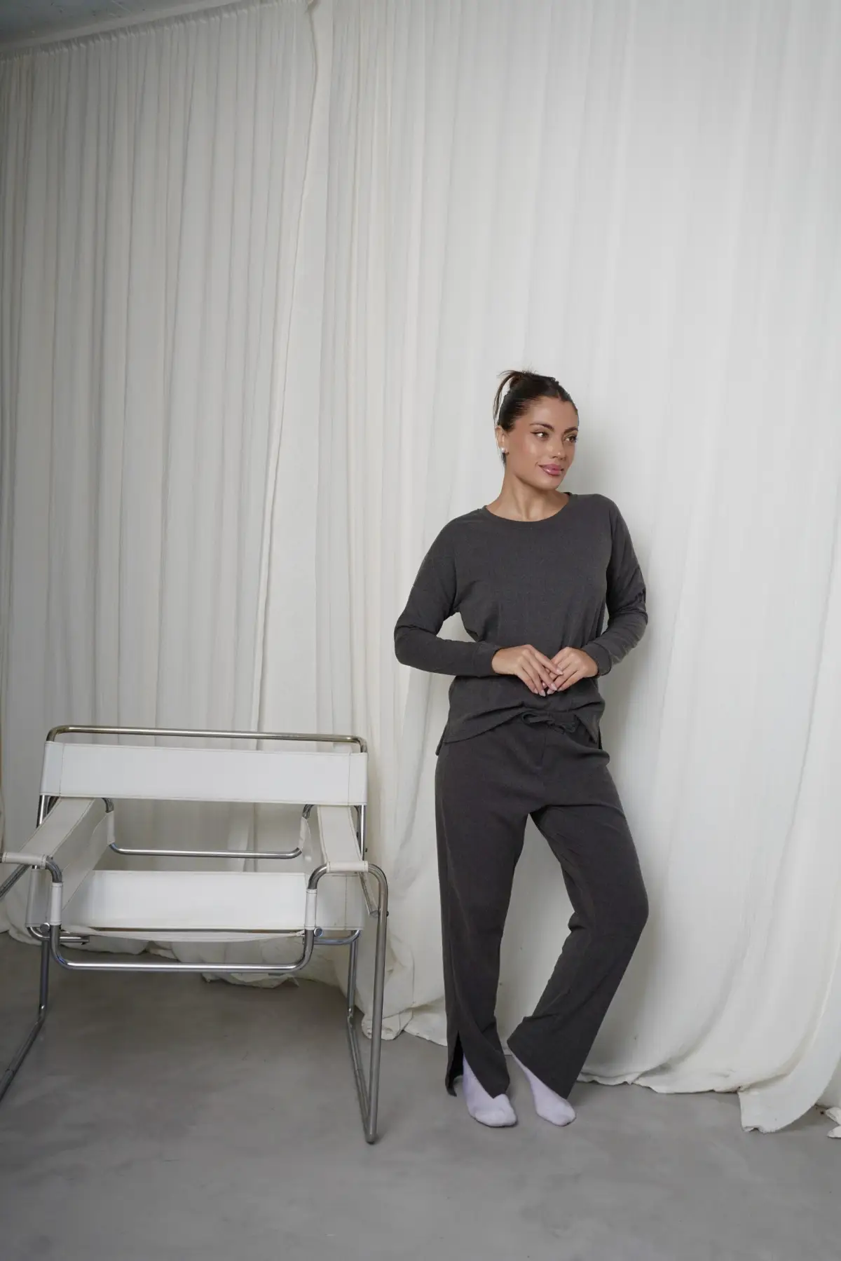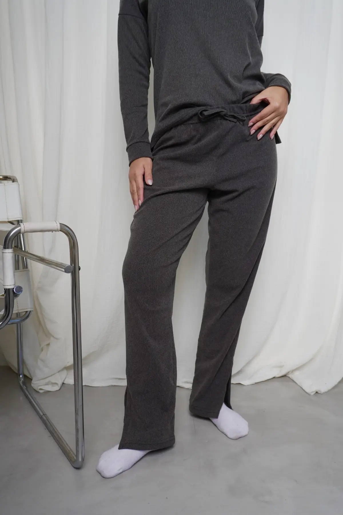 - Pantalón recto con tajo + remera mangas largas con puño y tajo. Velvet